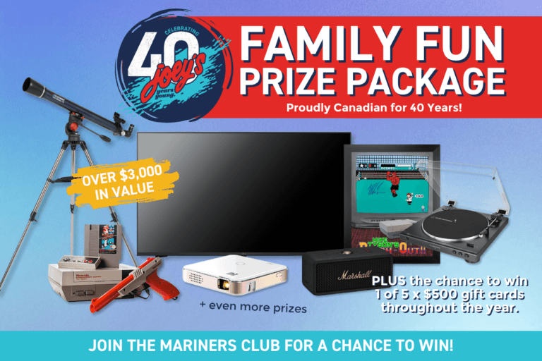 You’ll also be entered to win 1 of 5 x $500 Gift cards and receive the latest happenings and deals from your local Joey’s Restaurants.